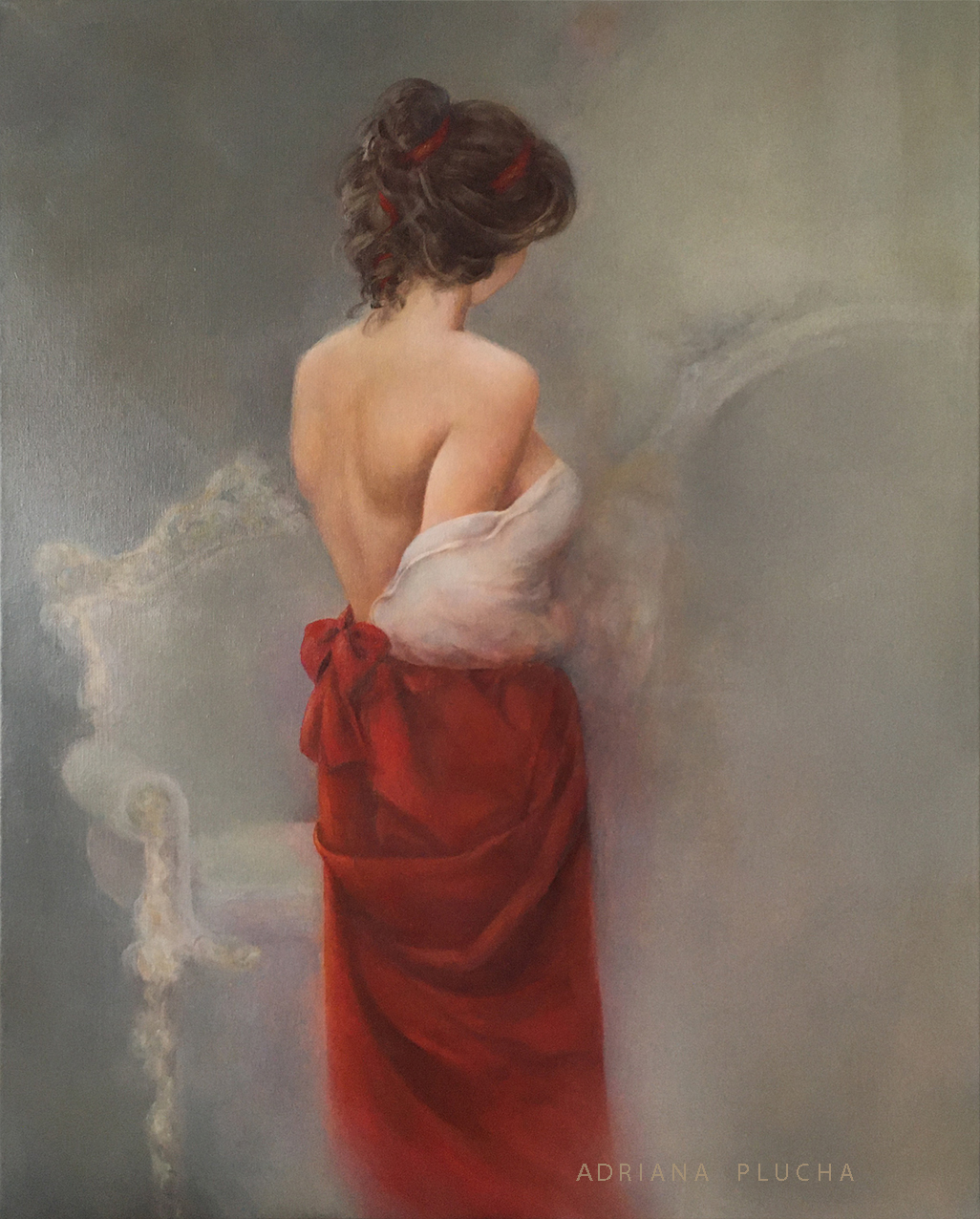 In the collection of paintings titled “The Temple of Silence,” we are transported into a space filled with delicacy, depth, and mystical feminine energy. Each painting captures a moment in time, filled with unspoken silence that emanates tranquility but also inner strength. It is a temple where feminine energy reveals itself in its purest form – subtle, yet undeniably present.