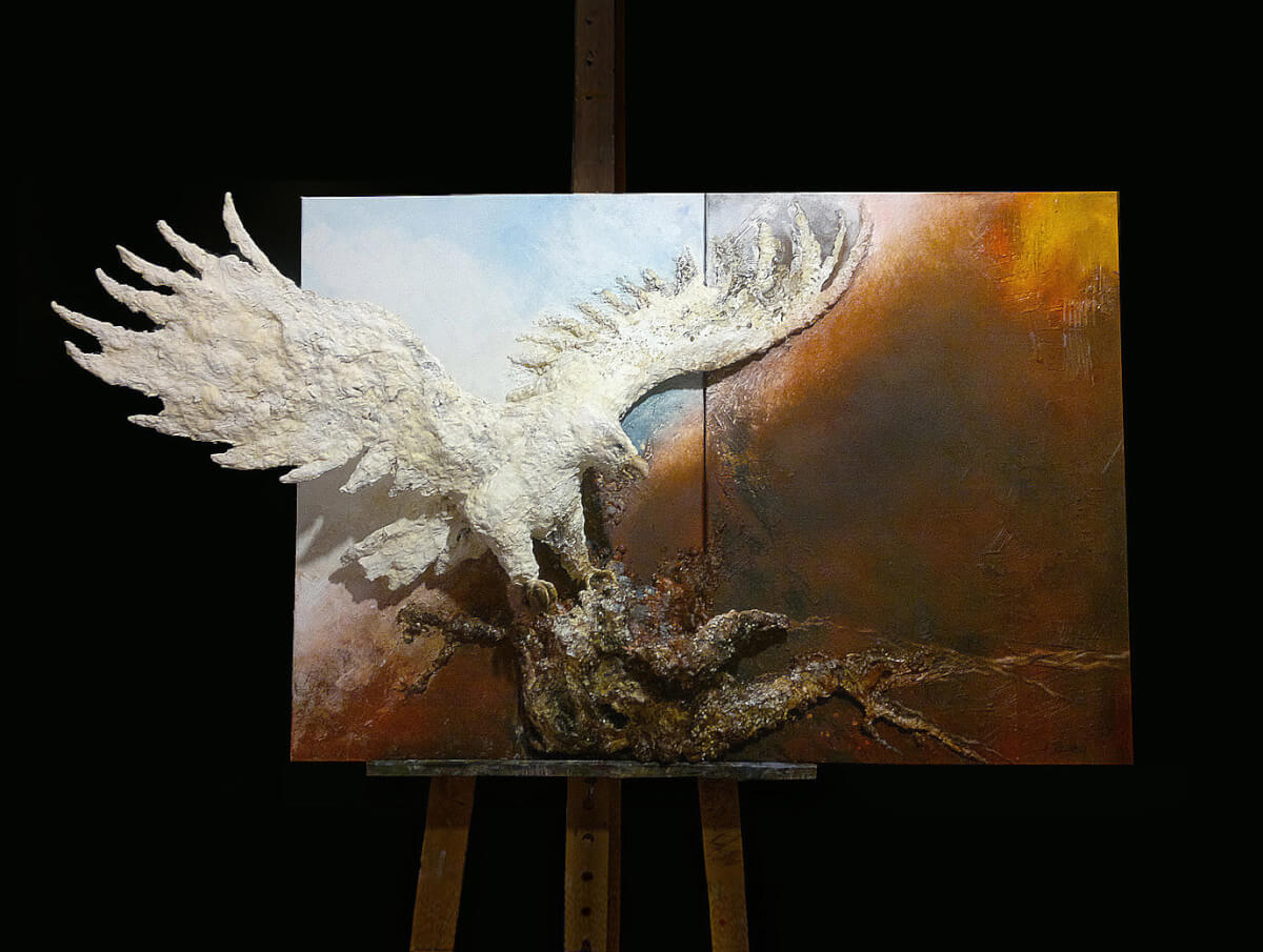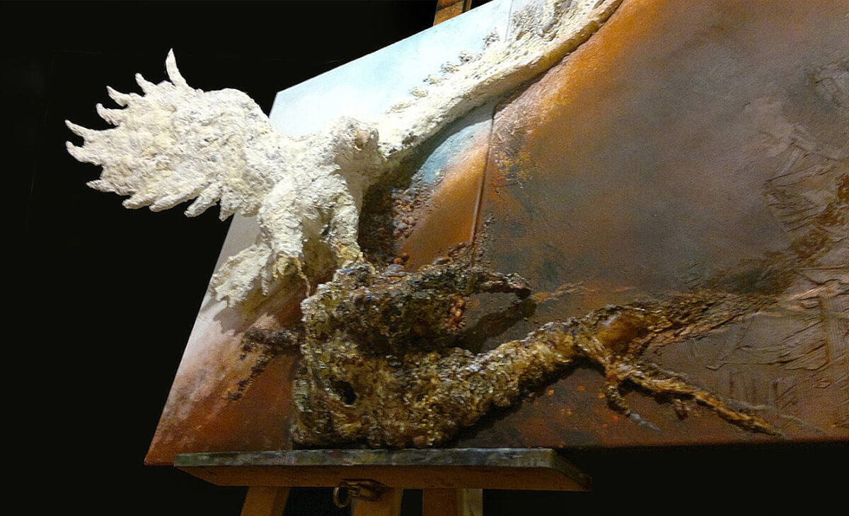The painting was shown during the 4th International Biennale of Painting "Quadro Art" in Łódź, Poland, in 2014. A canvas painting, my own technique, 100x100x18 cm.