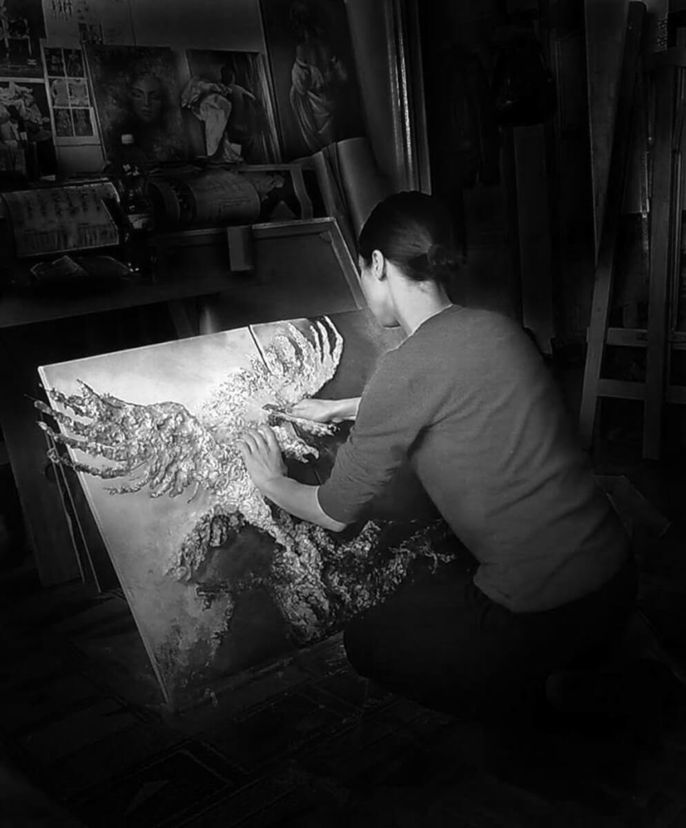 Obraz na płótnie, 70x90x13 cm, technika własna.