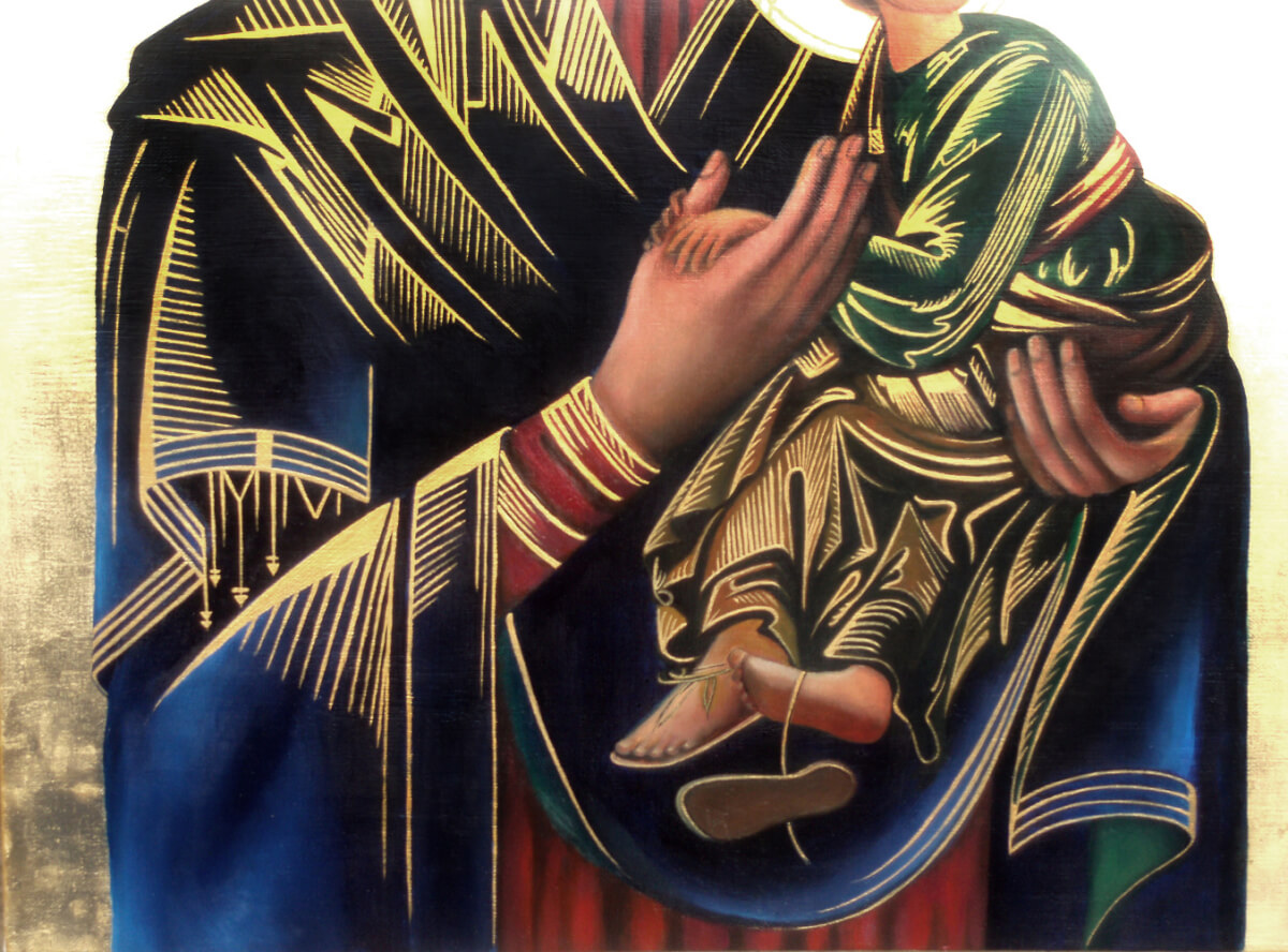 (Polski) Detal. Kopia ikony: »Matka Boża Nieustającej Pomocy ». Artystka: Adriana Plucha.